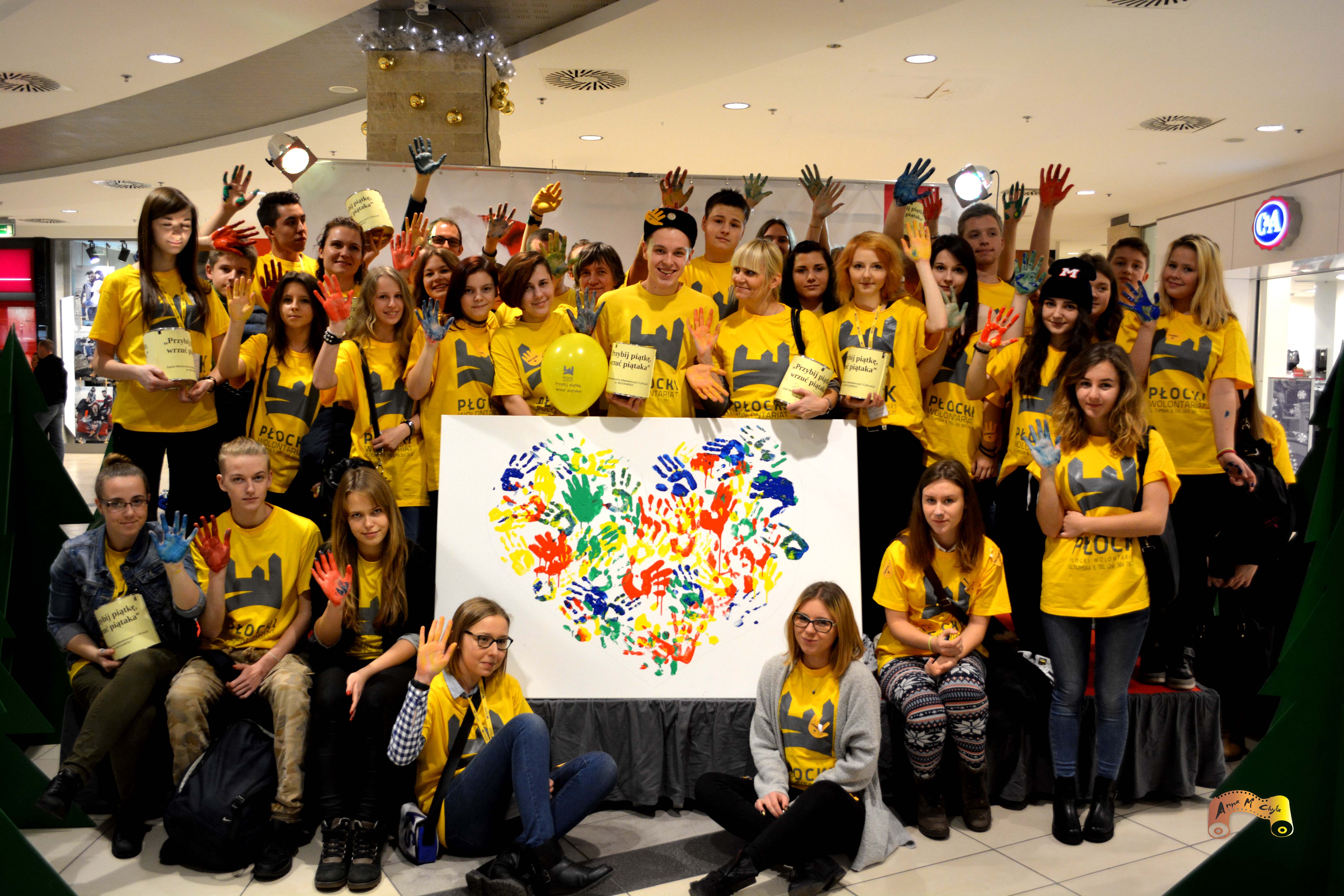 Akcja odbyła się w Galerii Wisła. Wolontariusze prowadzili zbiórkę pieniędzy na rzecz jednej z płockich rodzin znajdującej się w bardzo trudnej sytuacji finansowej. Zebrane środki przeznaczyli na zakup wymarzonych prezentów gwiazdkowych dla piątki rodzeństwa: 8-letniego Kacpra, 7-letniego Dawida, 4-letniego Alana, 3-letniego Adama i niespełna rocznej Julki. Wolontariusze prosili wszystkich odwiedzających galerię o przybicie piątki i wrzucenie „piątaka", czyli 5 złotych do puszki. Każdy, kto włączył się w akcję, otrzymał żółtą naklejkę-łapkę z jednym z haseł: empatia, przyjaźń, pomoc, uśmiech, dobro. Finałem akcji było tworzenie serca na wielkim płótnie. Każdy mógł odcisnąć kolorowy ślad swojej dłoni. Cała akcja zakończyła się ogromnym sukcesem - zebraliśmy 2337,01 zł.